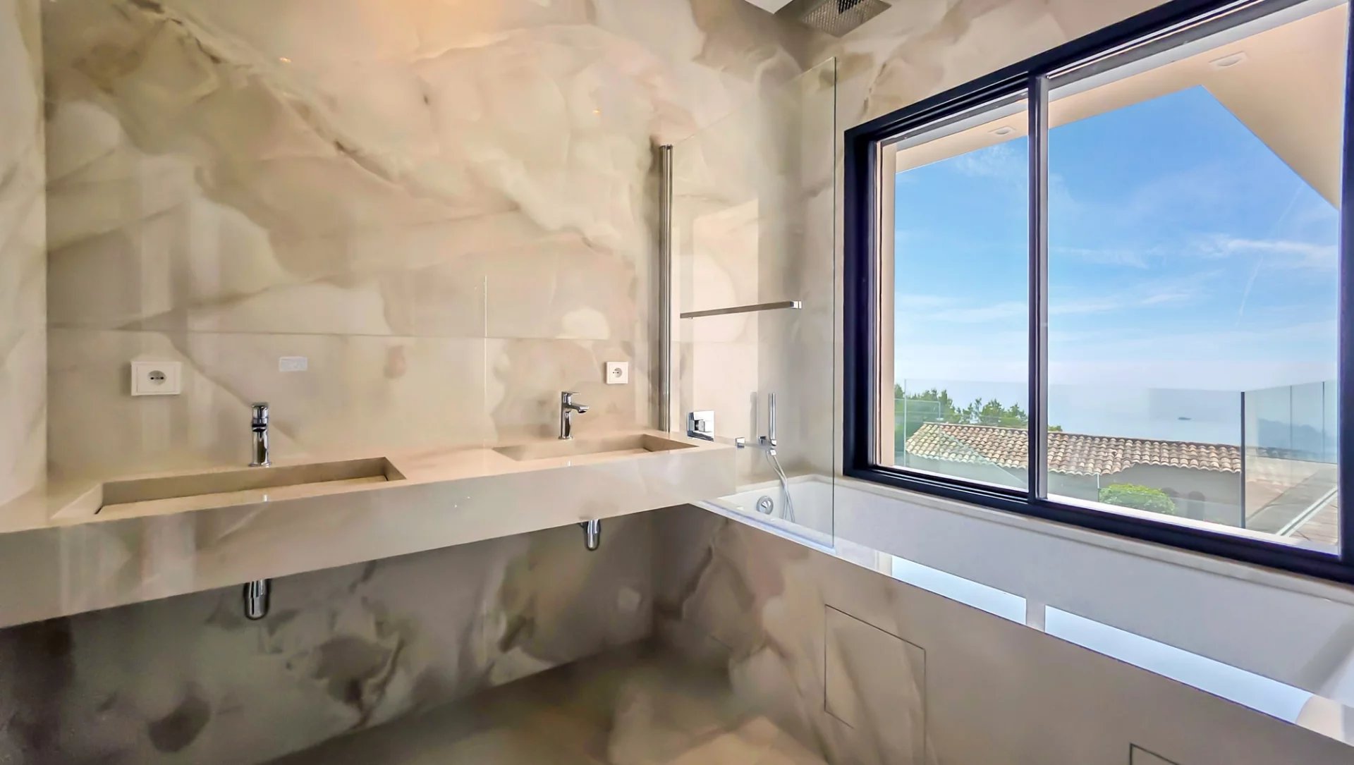 Nichée dans un domaine privé et sécurisé, cette superbe villa contemporaine neuve de 238 m² bénéficie d’un calme absolu et d’une position dominante offrant une vue panoramique à couper le souffle sur la mer, du Cap Martin jusqu’à Menton.
